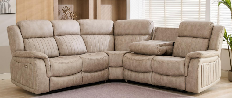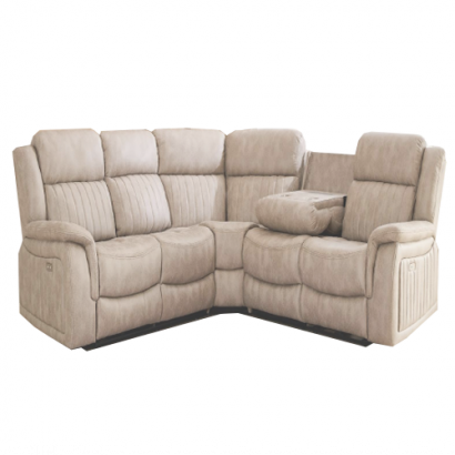 The corner sofa is not only full electric reclining but also houses 2 x coffee tables hidden behind
